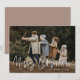 Modern helgdag-fotokort med vågräts foto med "God jul" i ett vitt handskript. Anpassa fotojulkortet med din familj namn och året. Det enda fotokortet återgår till visningen med en ljusbrun bakgrund med subtila vita helgdag.