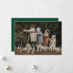 Modern helgdag-fotokort med vågräts foto med "Gott nytt år" i ett vitt handskript. Anpassa nyårskortet med din familj namn och året. Det enda fotokortet återgår till visning av en grönt med subtila vita helgdag.