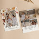 Den här platta dubblan på Thanksgivingen har modern typografi, våtfärgad höstlöv och en 3-fotokollage på baksidan. Infoga dina favoritfoton, lägg till en personlig beröring med ditt eget hjärtliga meddelande och anpassa det efter dina önskemål. Foton efter prostooleh / Freepik.