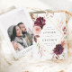 Elegant bröllop sparar datumet för inbjudan med en vattenfärgsblomkrans av dahlier, trädgårdsodling ro och peony i burgundrött, maron, rosa över höst löv med ett foto på baksidan. Om du vill ha en mer avancerad anpassning av den här designen klickar du på BLUE DESIGN VERKTYG. Matchande objekt är också tillgängliga.