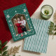 Fira årstidens sanna innebörd med en modern elegant-tvist. Det här vackert utformade helgdag-fotokortet har en contemporary på aktivitetsscenen och är designat för att ge värme, tro och stil till dina semesterhälsningar. Kärnan i designen är ett handformat foto ram - perfekt skapat för att visa din egen omhuldade bild. Att omge ditt foto är vår exklusiv, handritade nativitetscen, som har Mary, Joseph och baby Jesus, tillsammans med kameler, milda djur och grym handflatan träd. Fintliga blommigtar och lövverk ger en tidlös beröring som blandar traditionell symbolik med en modern, konstnärlig estetik. Resultatet är en hjärtslitande själ som hedrar säsongen samtidigt som man på ett vackert sätt belyser historien om din familj. På baksidan av kortet finns en modern grönt rand mönster. Skicka ett meningsfullt budskap om tro, kärlek, och glädja den här julhelgen med ett kort som återspeglar både tradition och konst. Handritad design och illustrationer ©Moodthology Papery