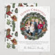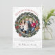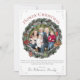 Detta festive land-fotojulkort innehåller handritade westerna illustrationer av en gräs-krans med cowboystövlar, cowboyhatt, hullbär, kakti och vintage julafton-prydnadsämnen i svart bläck. Ladda upp ditt eget familjefoto till och redigera texten så att den blir unik för dina. Baksidan har ett sött mönster i land inslag. Vit bakgrund.