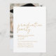 Önska student lycka till med detta enkla och elegant studenten inbjudan. Inbjudan innehåller en elegant med en mjuk, vit bakgrund. I mitten är det vackert skribentteckensnitt i guld som används i party och som utesluter en sofistikerad luft. Baksidan har plats för ett foto. Inbjudan gäster till din studentfest med den här enkla designen. Bakgrund färg och text kan redigeras.