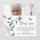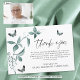 Grönten Memorial Tack Butterfly Script Photo Sage (Memorial Butterfly Script Photo Sage) - Tack för dina kort. Skicka ett hjärtligt tack för den vänlighet och medkänsla som visas under din svåra tid av förlust. Designen har mjukt, sage grönt vattenfärg botaniskt inslag och fjärilar samt ett redigerbart meddelandeområde för anpassningsbarna. Baksidan har ett nyckelfoto, en redigerbar titel som IN LOVING MEMORY eller FOREVER IN OUR HEARTS, din älskade persons namn och data. ASSISTANS: Om du vill ha hjälp med designändringar, överföra designen till en annan produkt eller om du vill samordna objekt kontaktar du designern INNAN ORDERING via Zazzle Chatta MESSAGE-fliken eller e-postmeddelandet makeitaboutyoustore@gmail.com.
