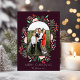 Mery Jul, modern elegant blommigt söt Helgdag Photo Arch Card. Botanisk blommigt i färg rosa grönt för muterad pastel och rött på mörkens burgunda helgdag-fotojulkort. Här ingår botaniskt gräs, blommor, sprit, löv, bär och knoppar, tillsammans med modern typografi i vitt, med texten "God jul". Originalteckningar av Caroline Bonne Müller