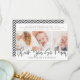 Den här enkla och klassiska designen består av serif-typografi och lägger till ett anpassningsbar-foto. Baksidan har en schevron mönster. Den här utformningen är modern, chic, lekfull och roligt.