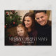 Enkel och elegant modern typografisk God jul-grafik med fotomall och ogenomskinligt filter för mörk som tillval med redigerbart fält.