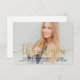 Ett platt format för snyggt och elegant med studenten tack för att du har ett överordnat foto med trendigets "tack"-skript för faux-guld. Anpassa den moderna anpassningsbarnas text med namn, skola och klassår. Ett tack till anpassningsbarna som du kan skicka och/eller ett foto kan läggas till på baksidan av kortet.