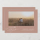 Ett mycket modernt vismiskt kalligrafiskt skript på en terracotta-bakgrund lägger till detta Spara datumkort. Anpassa enkelt med din personliga information, ditt foto och din webbadress för bröllop