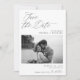 Det här moderna fotot som sparar datumkortet innehåller ett svartvitt foto av det nyfödda fotot som snart ska kombineras med ett romantiskt skript för eleganten.
