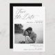 Det här moderna fotot som sparar datumkortet innehåller ett svartvitt foto av det nyfödda fotot som snart ska kombineras med ett romantiskt skript för eleganten.