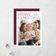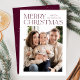 Modern julfotokort med "God jul" som visas överst på designen i vin-färgad-trendiget med vit bakgrund. Anpassa det enkla julkortet med din familj namn och ditt foto. Kortet återgår till visning i vin med subtila vita prickar (snö).