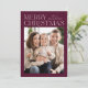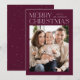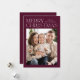 Modern julfotokort med "God jul" som visas överst på designen i trendig med vit text med vin-färgad som bakgrund. Anpassa det enkla julkortet med din familj namn och ditt foto. Kortet återgår till visning i vin med subtila vita prickar (snö).