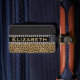 Skräddarsy/personifiera och tillfoga ditt adress och telefonnummer på detta leopardfläcktryck och svärta läderdesignen med monogramen för vitdiamantrhinestones. (UTSKRIVAVET FOTO). Baksidaen är klar att personifiera och tillfoga ett namn, en adress och ett telefonnummer.