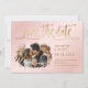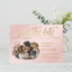 Elegant rosa och guld bröllop-foto sparar datumkortet med ett modernt skriptteckensnitt i med guld-folie. Anpassa det här kortet enkelt med information om bilder och bröllop.