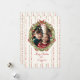 Tidslöst och vismiskt julkort med prickad röd och grönt strimlad bakgrund och en vattenfärgad helgdag med rött band. Det här helgdag kommer säkert att få alla att känna julstämningen. Sprid glädje och glädje med vårt vattentäta röda bågkort julkort den här julhelgen!
