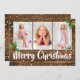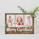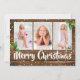 Christmas-kort i land med en rustik träbakgrund, en samling med tre foton som du kan använda för att anpassa dig till, festive holly, en dusch i snö, ord "god jul" i ett kalligraftypsnitt och din familj namn.