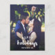 semesterhälsningar med de här julfotokorten med lodrät- eller porträtt-orienterat favoritfoto. "Glad helg" visas vid grund som ett textöverlägg i vit pensel, modern stavad typografi. Anpassa med din familj namn eller namn under och ett personligt meddelande på baksidan