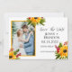 Elegant, modern, Sunblommor vattenfärg, gult, land, rustik, skript, foto, spara datuminbjudningarna. Anpassa den med din information.