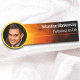 Den här professionellen namn bricka har en vit namn och en rubrik på den övre högerna över en svart och orange solnedgång. Anpassa fält, ta bort titeln eller klicka på anpassa för att markera det teckensnitt stil, storlekt och färg som du vill använda. Byt ut fotot mot ditt. Ett fyrkantigt foto fungerar bäst.