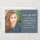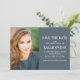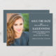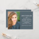 Modern studenten Spara det platta datumkortet för studenter i 2022 års (eller vilket år som helst) personlig med ditt foto, namn, skolan namn, studenten, studenten, datum och plats, tillsammans med ett meddelande om att den formella inbjudan kommer att skickas senare. Anpassadets bakgrund färg är en elegant skifferblått.