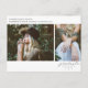 Anpassningsbar 2-foton med namn, skola och år överst med "student"-skriptlinjekonst i grund. Bakgrunden på framsidan är vit. Anpassa inbjudan på baksidan.