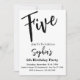 Svartvitt Modern femte Födelsedagsfest inbjudan. Fyrtio svarta och vita, moderna 5:e Födelsedagsfest inbjudan-Födelsedagsfest inbjudan i det moderna "Turning 5 har aldrig varit den här chicen! Gör din milstolpe till en födelsedag som inte kan glömmas bort med vår feta typografi Black & White Modern 5th Födelsedagsfest inbjudan. Var unik, var djärv, må du vara! 🌸 ta ✨ din feta typografi blå inbjudan nu! 💌 #BirthdayInvestigation" Vuxen Birthday-inbjudningar | Modern 5:e inbjudan | Inbjudan till firande på födelsedagen