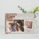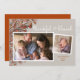 Det här platta fotokortet har en vattenfärgsgrafik för abstrakt som lämnar som bakgrund i höstens färgad. I designen finns två foto ramar som visas på framsidan med kalligrafiktexten "tack och välsignad". Baksidan är en orange på hösten med anpassningsbar för ett personligt budskap och namn. Fotografi © Storytree Studios, Stanford, CA