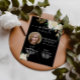 Den här inbjudan innehåller en elegant vattenfärgad elfenbensvit blommor och ett enkelt och modernt minimalistiskt stil med vacker manusgrafi och sans serif och serif typsnitt mot svart bakgrund. Du kan anpassa dig med ett foto av din älskade och information om begravnings-/minnestjänsten. Du kan anpassa inbjudan på vilket sätt du vill minnas och hedra minnet av din älskade. Notera bara att ordalydelsen "i kärlek", "tjänst" och "mottagning" inte kan redigeras. Du kan ändra färg eller ta bort det från meddelandet om inbjudan till begravningsminnestjänsten om du vill. Anpassa inbjudan slått.