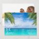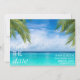 Tropiskt blått vatten-strandscen bröllop spara datum för ditt målbröllop. Anpassa med namn, datum och plats för bröllop och lägg till ditt foto på baksidan.