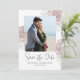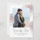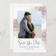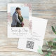 Det här sparar datumkortet med en vacker fotolayout som är accentuerad med information om vattenfärgsdetaljer i rosa och skapar en mjuk perfekt och elegant för ett trädgårdsbröllop. Det enkla men romantiska stil innehåller en QR-kod som länkar direkt till webbplatsen för bröllop och skapar det enkelt för gästerna att hitta all information om evenemanget. Ett tidlöst och charmerande val för det moderna par som tillkännager sin speciella dag.