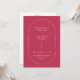 Den här eleganten innehåller en modern minimalistisk bröllopsinbjudan med en snyggt med cirkulär text där det står "vänligt gå med oss fira bröllop av" elegant placerat överst, vilket ger en romantisk och formell beröring av en levande magenta. Det sofistikerade serif-typsnittet belyser parets namn med ett rent och förfinat utseende. På baksidan av kortet finns utrymme för ett personligt foto av paret lycklig och ett QR-anpassade för gäster till OSA och mer information. Prova att gå grönt med denna allt-i-ett-moderna miljövänliga inbjudan genom att minska på ytterligare OSAS- och detaljkort. Lägg bara till din egen QR-kod längst bak i inbjudan för dina gäster till OSAN och få mer information om bröllop. Anpassa namn och formuleringen i några enkla steg och anpassa inbjudningskortet med ditt foto av lycklig-paret till ge ett unikt och personligt drag. Observera: Ordalydelsen "gå med oss gärna fira bröllop i," "mottagning omedelbart efter ceremonin" på framsidan och "tjänsten för ditt svar begärs" på baksidan, tillsammans med linjer och grafik i inslag, kan inte redigeras, tas bort, flyttat eller ändras. De är fixerade. Om du behöver ändra färg kan du anpassa inbjudan. Du kan enkelt anpassa inbjudan med egen text och den digitalt via text, e-post eller social-media. Alternativt kan du skicka en utskriven version till gästerna eller göra båda sakerna - skicka en digital version och följa upp med en utskriven kopia för att få mer personlig.