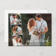 Modern Calligraphy Bröllop 4 Photo Ny gifta Announcement Postcard