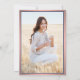 glädjen i en högskoleexamen eller högskoleexamen för henne med de här anpassningsbarna blåa, vita och rosa tillkännagivanden. (IMAGE PLACEMENT TIP: Ett enkelt sätt att centrera ett bild exakt på vilket sätt du vill är att skicka det till skörd innan du laddar upp det på Zazzles webbplats.) Den här formella stil-mallen innehåller föräldrarnas och student namn, samt valfri ordalydelse, t.ex. information om inbjudningar till partier, speciella arvoden, graderingstitel, favoritcitat, studentens kontaktinformation, framtida utbildningsplaner eller ny befattning. All text är enkel att anpassa. Utformningen har en modern mörk blått bakgrund, faux ro guld foil gräns & mortar board, elegant script calligraphy, traditionell typografi och ett foto som du kan välja, t.ex. ett överordnat bild eller en bild från startceremonin. Observera att ro guld är tryckt på färg, inte metallfolie. Dessa annonskort från studenten är ett trendig och en chic för att er speciella dag firande med familj och vänner. Grattisar till student!