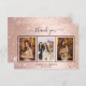 Lägg till 3 av dina födelsedagsfoton, lodrät storlekt, ett datum, namn och tackkortet. En faux metallisk bakgrund i ro tittar bakgrund med svart text och ram, faux sparkles. Texten: Tack på framsidan och ditt namn på baksidan skrivs med ett handskript med snyggt med dekortecken.