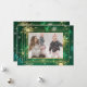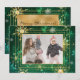 Guldsnöflingor på en vacker julgrön och gul snöflingebakgrund. Säsongsbetonad gratulationskort. Trippel faux guld fin ram. Lägg till dina favoritfamiljefoton för att personliggöra denna skönhet. Så enkelt, men chic.