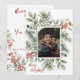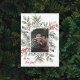 Grönt festligt fotoram julkort skapat med akvarell tallgrenar och julgransbär på en mjuk grön bakgrund för det vackraste julkortet till alla dina familjemedlemmar och vänner. God Jul-hälsning har lagts till framsidan av denna skönhet för att ge extra elegans. Bara underbart.