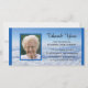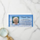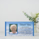 Det här fantastiska fotokortet har ett foto av din älskade som fokalpunkt med ett blått gräns som upprepas längs högerna och lämnar kant på fotokortet. Ord "Tack" visas i himlar med namn i din familjs höger nedan. Snygg ord för att tacka er för er sympati visas i molnen nedan. Copyright-sympatitack