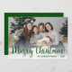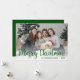 Det vackra fotokortet med foto, ord, God jul! i ett modernt skript på mörk grönt och i namn och året i ett rent, skarpt typsnitt på mörk grönt framtill och en samordnande djup grönt tillbaka kommer att ge varje mottagares ansikte ett leende. Alla kommer att tycka om att få ett nytt foto av dig och din familj eller dina barn. Om du vill göra det här kortet till ett eget kort väljer du Anpassa den här mallen, överför ett favoritfoto, lägg till din familj namn och året. Det är lätt toppen!