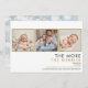 Sprid glädjen över en julfödelse med det här eleganten moderna födelseannonskortet för helgdag. Anpassa fronten med dina speciella 3 foton, baby namn och födelsestatus, och helgdag. Den omvända funktionen har söt som faller i snöflingor frost bakgrund. Designad av Thisisnotme©
