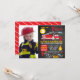 Djärv kritskrifts pojkens foto brandbil födelsedagsinbjudan med brandbil, brandpost, brandslang och yxa. Lämplig för alla som gillar kritskriftsinbjudningar och bra för en brandbilstematisk födelsedagsfest. Samma design finns också tillgänglig utan foto i butiken.
