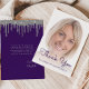 Foto Lila Silver Glitter Drip 40:e födelsedag Tack Kort