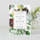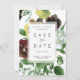 Blommigtens foto sparar datumkortet med fetstilta paneler och löv med bröllop-detaljer i modernt teckensnitt.Kortet kan enkelt anpassas för alla händelser genom att du lägger till information om evenemanget, teckensnittet stil, teckensnittet storlekt & färg och den text du väljer genom att klicka på knappen Anpassa. Lägg till ditt favoritfoto längst bak på kortet.