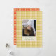 Plötsligt handritat, checkat fotokort med gyllene gulter på framsidan och ett lock med röda helgdag på baksidan. Konst och design av Annie Montgomery Design.