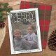 Ett stort julfoto med vit gräns gör en modern och djärv Julhälsningar. Bakgrundsdesignen innehåller en mönster som är uppsatt i munnen och grönt för ett klassiskt utseende. Lodrät Photo - Använda ett bild med subjekt, helst i mitten eller uppåt. Ett mörkare foto fungerar bättre med den här övertäckningen av vit typ. Gör ett unikt och trendig God jul hälsning med ett trendig och glatta mönster på baksidan.