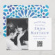 Transporter dina gäster till Medelhavets soldränkta stränder med vår exklusiva blå-kakel-inbjudan för bröllop. De marockanska och spanska kakel-motiven, intrikat designade i livfulla nyanser av blått, skapar en rustik elegans som är perfekt för ett destinationbröllop eller en kustinspirerad fest.