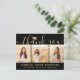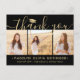 Skicka ett tacksamhetsmeddelande med anpassningsbar 3-fotokollage svart och guld-studenten-tack som du postkort. Alla bilder och formuleringar är enkla att anpassa. (IMAGE PLACEMENT TIP: Ett enkelt sätt att centrera ett foto exakt som du vill är att flytta det till skörd innan du laddar upp det till Zazzle-webbplatsen.) Den här mallen kan anpassas med valfri ordalydelse, t.ex. framtida utbildningsplaner, nya befattningar eller favoritinspirationstecken. Om du föredrar att lämna skriva till ditt meddelande tar du bara bort exempeltexten eller användan extra ovanför ny adress- och kontaktinformationen. Utformningen har ett faux foil mortar board-lock, handskriven kalligrafi av stil-skript, modern minimalistisk typografi och tre foton som du själv väljer, t.ex. äldre bilder eller bilder från startceremonin. Observera att guld är tryckt på färg, inte metallfolie. Dessa kort för personlig i elegant är ett trendig- och chic sätt att tacka familj och vänner för att de har delat med sig av studenten firande. Grattisar till student!