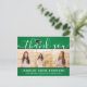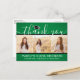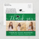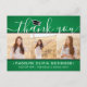 Skicka ett stilfullt tack med en anpassad fotokollage i grönt, svart och vitt tack-kort efter examen. Alla bilder och texter är enkla att anpassa. (TIP: Ett enkelt sätt att centrera ett foto exakt som du vill är att beskära det innan du laddar upp det till Zazzle:s webbplats.) Den här mallen kan anpassas med valfri text, till exempel framtida utbildningsplaner, nytt jobb eller ett favoritcitat. Om du hellre vill skriva din hälsning för hand tar du helt enkelt bort exemptexten eller använder det extra utrymmet ovanför den nya adressen och kontaktinformationen. Designen har en grön ombre-bakgrund, svart och vit studentmössa, handskriven stilspråkskalligrafi, modern minimalistisk typografi och tre bilder som du väljer, till exempel bilder från studenten eller ceremonin. Dessa eleganta personliga kort är ett trendigt och chic sätt att tacka familj och vänner för att de delade din examensfirande. Grattis till examen!