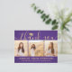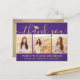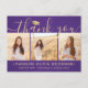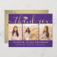 Skicka ett tacksamhetsmeddelande med anpassningsbar 3-fotosamlingskort lila och guld studenten-tack som du har vykort för. Alla bilder och formuleringar är enkla att anpassa. (IMAGE PLACEMENT TIP: Ett enkelt sätt att centrera ett foto exakt som du vill är att flytta det till skörd innan du laddar upp det till Zazzle-webbplatsen.) Den här mallen kan anpassas med valfri ordalydelse, t.ex. framtida utbildningsplaner, nya befattningar eller favoritinspirationstecken. Om du föredrar att lämna skriva till ditt meddelande tar du bara bort exempeltexten eller användan extra ovanför ny adress- och kontaktinformationen. Utformningen har en lila ombre-bakgrund, en faux foil-pantarmatur, handskriven stil-manusgrafi, modern minimalistisk typografi och tre foton som du själv väljer, t.ex. äldre bilder eller bilder från startceremonin. Observera att guld är tryckt på färg, inte metallfolie. Dessa kort för personlig i elegant är ett trendig- och chic sätt att tacka familj och vänner för att de har delat med sig av studenten firande. Grattisar till student!