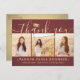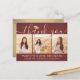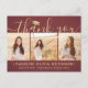 Skicka ett tacksamhetsmeddelande med anpassningsbar 3-fotokollage burgundy och guld studenten-tack som du vykort. Alla bilder och formuleringar är enkla att anpassa. (IMAGE PLACEMENT TIP: Ett enkelt sätt att centrera ett foto exakt som du vill är att flytta det till skörd innan du laddar upp det till Zazzle-webbplatsen.) Den här mallen kan anpassas med valfri ordalydelse, t.ex. framtida utbildningsplaner, nya befattningar eller favoritinspirationstecken. Om du föredrar att lämna skriva till ditt meddelande tar du bara bort exempeltexten eller användan extra ovanför ny adress- och kontaktinformationen. Utformningen har en maronröd ombre-bakgrund, ett faux foil-murbruk, handskrivet stil-manusgrafi, modern minimalistisk typografi och tre foton som du själv väljer, t.ex. äldre bilder eller bilder från startceremonin. Observera att guld är tryckt på färg, inte metallfolie. Dessa kort för personlig i elegant är ett trendig- och chic sätt att tacka familj och vänner för att de har delat med sig av studenten firande. Grattisar till student!